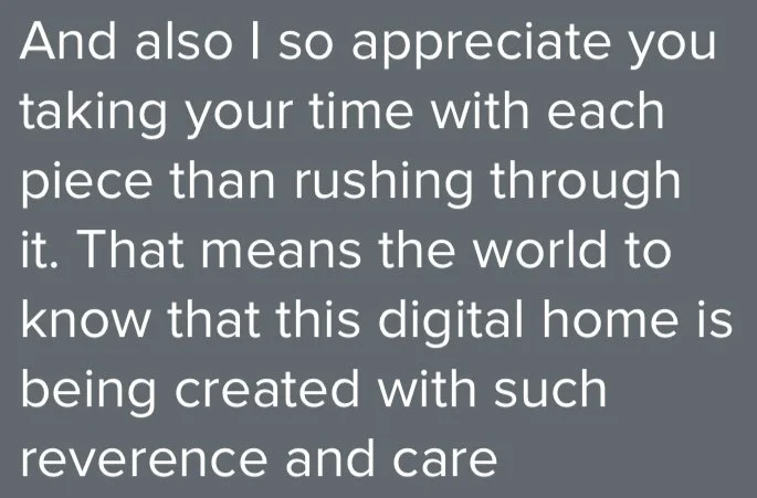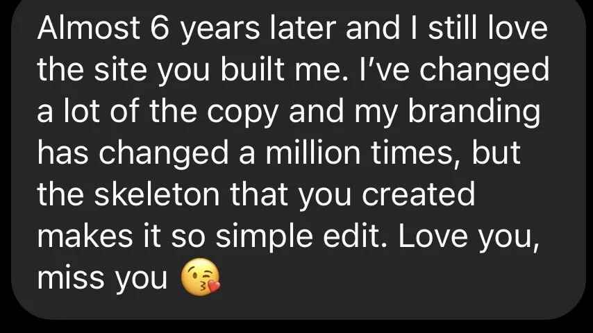 Includes 5 page site built in Squarespace, fonts + colours and brand exploration, 1 week in Voxer with Emily for realtime feedback and support, bonus launch graphics + more.